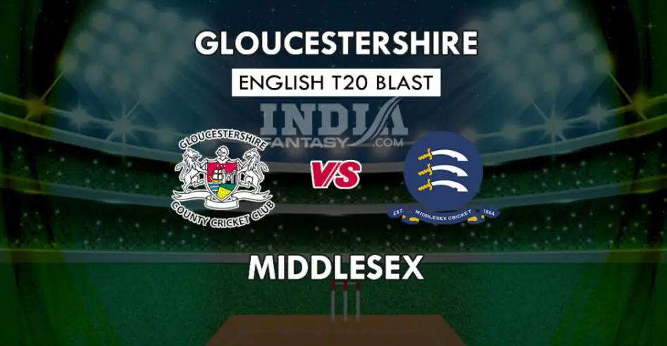 इंग्लिश T20 ब्लास्ट के साउथ ग्रुप मुकाबले में Gloucestershire और टूर्नामेंट में संघर्ष कर रही Middlesex की टीम आमने सामने होगी। Gloucestershire की टीम पिछले हफ्ते तक तक पॉइंट टेबल में पहले नंबर पर थी लेकिन पिछले मुकाबले में Essex Eagle के खिलाफ 6 रन सए जीत हासिल करने के बाजवूद टीम पहले स्थान से खिसक कर तीसरे स्थान पर आ गयी है।