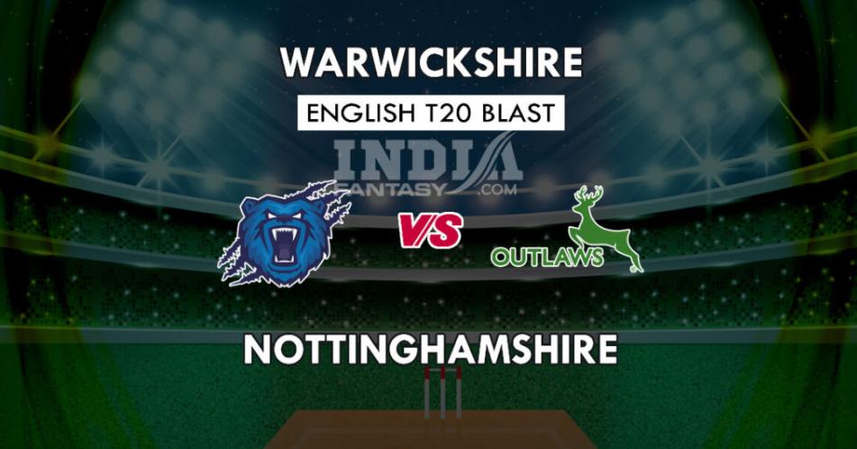 इंग्लिश T20 ब्लास्ट के अगले मुकाबले में Birmingham Bears की टीम Nottinghamshire Outlaws के सामने मुकाबले के लिए होगी। यह मुकाबला गुरुवार को Edgbaston में खेला जाएगा। यह मुकाबला दोनो टीमों के लिए काफी महत्वपूर्ण है और दोनो टीम इस मुकाबले में हर हाल में जीत दर्ज करने की कोशिश करेगी।