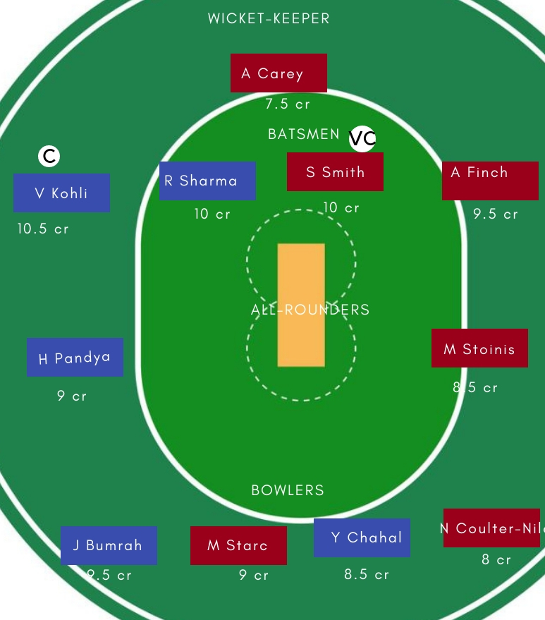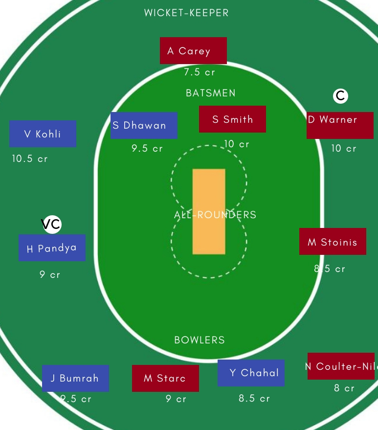गेंदबाज : P Cummins, M Starc, Adam Zampa, Nathan Coulter Nile