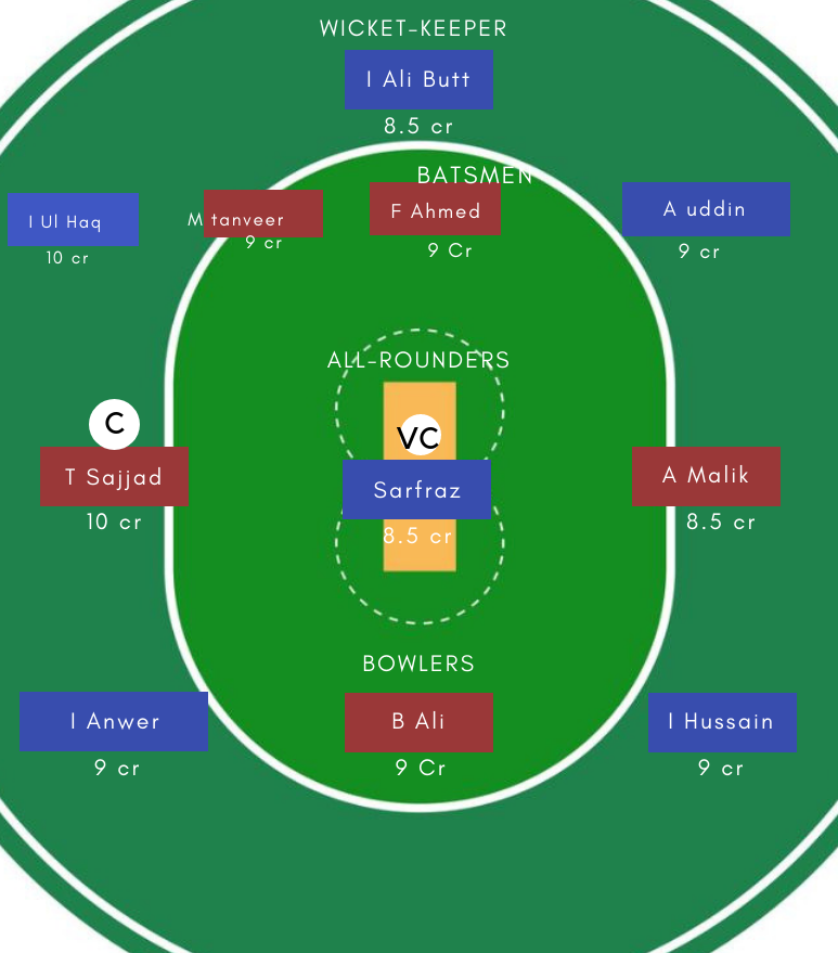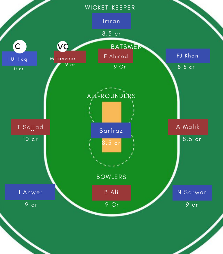 ऑलराउंडर : M Tanveer का प्रदर्शन शानदार रहा है. A Malik और T Sajjad को लिया जा सकता है.