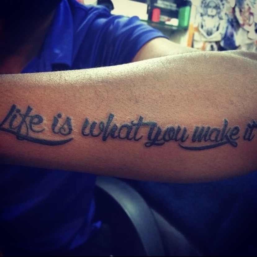 Apart from the tribal tattoo on his body, the Mumbai Indians batsman has inked two motivational quotes on his body. The quote on his left forearm reads “Life is what you make it,” while the quote on his left foot reads “Take one step at a time.”