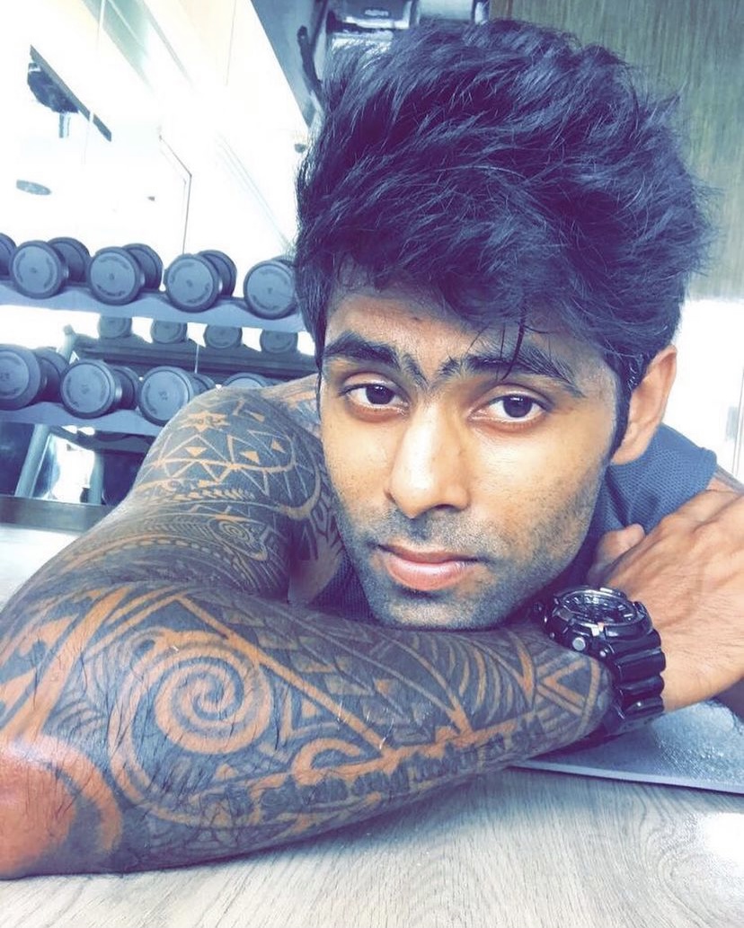 The right arm of Suryakumar Yadav has the Nautical Star tattoo, which symbolizes direction, freedom, guidance, hope, and intuition. On the same arm, the swashbuckling batsman has an inked rose tattoo that signifies new beginnings, true love, emotions, passion, mature love, protection from an envious lover.