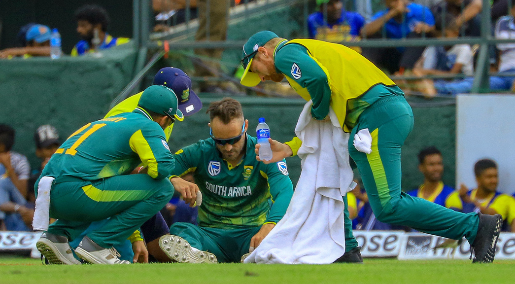 कप्तान को एक कैच लेने के दौरान कन्धे में चोट लग गई, उसके बाद डु प्लेसिस ने चोट के कारण तुरंत मैदान छोड़ दिया. टीम मैनेजर मोहम्मद मोस्जी ने मीडिया को बताया कि, फैफ के कन्धे में चोट लगी है और अब वे पूरे दौरे से बाहर हो गए हैं. उन्हे अगले छह महीने के लिए रिकवरी केंद्र जाना होगा. पांच मुकाबलों की इस एकदिवसीय श्रृंखला में मेहमान दक्षिण अफ्रीका ने मेजबान ने शृंखला पर कब्जा कर लिया है. गौरतलब है कि दक्षिण अफ्रीका ने इस सीरीज में 3-0 से बढ़त बना ली है. अगला मुकाबला पल्लेकेले के मैदान पर खेला जाएगा. यह इस सीरीज का चौथा मुकाबला है. कप्तान डू प्लेसिस अब टीम का हिस्सा नहीं हैं.