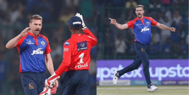 Delhi Capitals’ pace battery Anrich Nortje has once again notched above 150 Kph. Delhi Capitals are currently hosting Mumbai Indians at the Arun Jaitley Stadium in Delhi. The hosts have posted 172 on the board and in the defense the DC bowlers haven’t been up to the mark. However, Anrich Nortje seems upbeat with his bowling as the SA pacer clocked above 150 Kph in his very first over of the match.