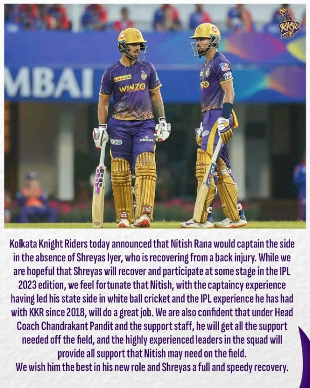 The KKR team management have ponder their faith on the talented young left-hander to lead the side in the absence of Shreyas Iyer. KKR didn’t have a great season last time around as they failed to make it to the playoffs. They did their homework in the 2023 IPL auctions and formed a formidable ahead of the season, but Shreyas’ injury is a big blow for them. Kolkata Knight Riders took to twitter to announce the appointment of Nitish Rana as skipper,
