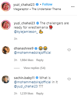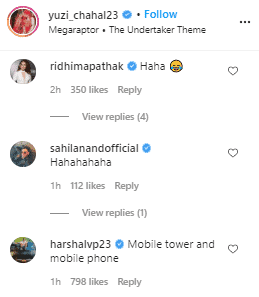 The wife of Chahal was quick to reply to the post with Sachin Baby and Harshal Patel also replying to the post. Sachin asked what is Mohammad Siraj doing in the video and Harshal Patel commented, ” Mobile Tower and Mobile Phone”.