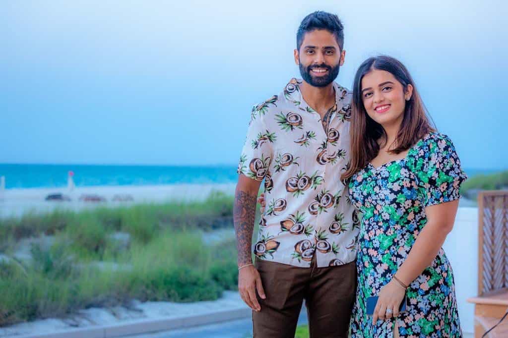 Suryakumar Yadav is one of the most stylish and consistent batsmen in the Mumbai Indians team. He’s been married to Devisha Shetty since 2016, and the couple often shares pictures of their travels and family time on social media. Devisha is a fashion designer and often styles her husband’s outfits for events and matches.