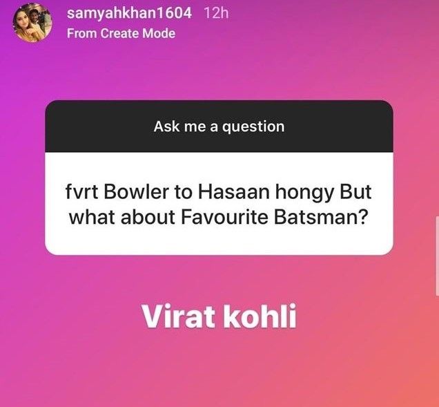 During a recent Q/A session on her Instagram story, Hasan Ali’s wife Samiya Ali was asked to name her favourite batsman. To everyone’s surprise, instead of Babar Azam, the Pakistani fast bowler’s wife picked Virat Kohli as the best batsman.