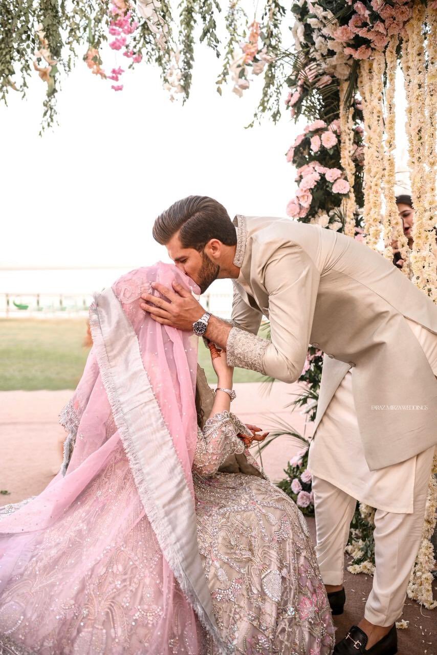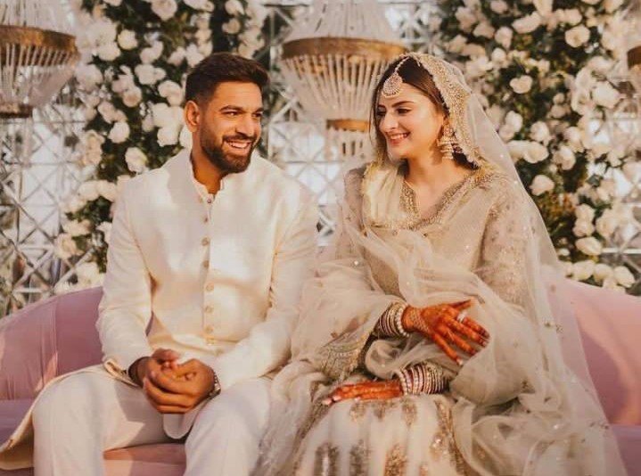 Pakistani cricketer Imad Wasim was captivated by British-Pakistani Saniya Ashfaq, whom he met during a cricket match. As their relationship blossomed, Imad’s cricket career also soared in Pakistan. With the approval of their families, the couple’s nikkah took place at the Shah Faisal Mosque in Islamabad in August 2019.