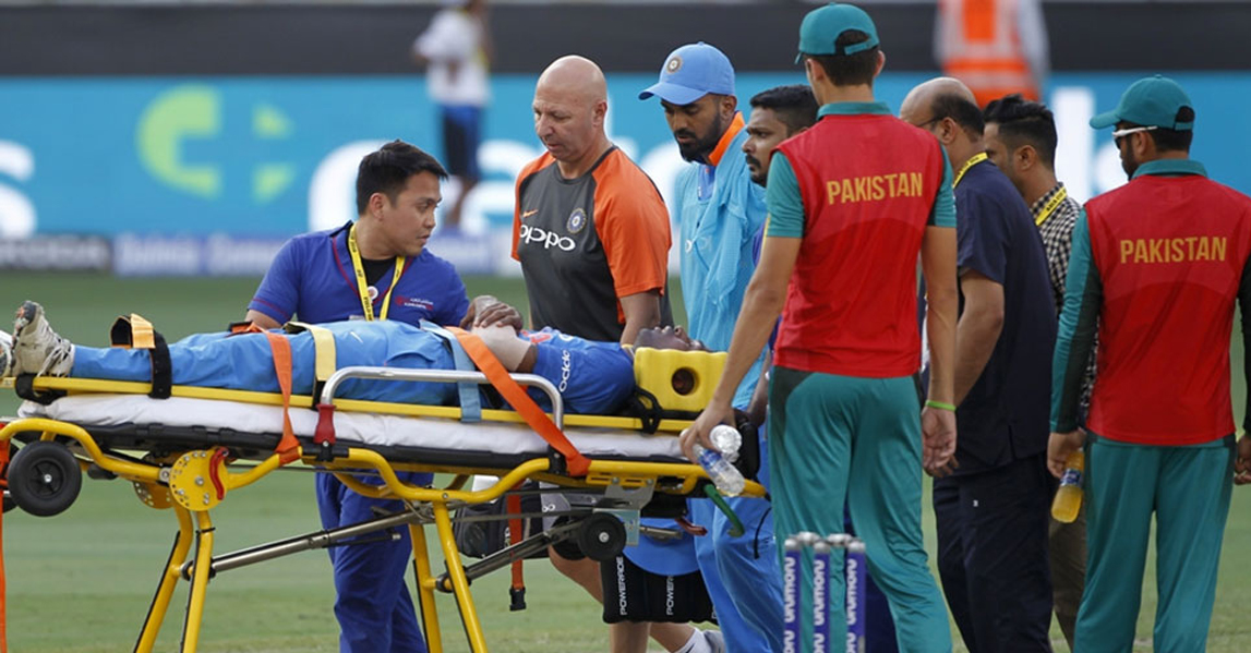 . @hardikpandya7 being stretchered off. Hope his injury is not too serious. Take care ?? #INDvPAK #AsiaCup2018