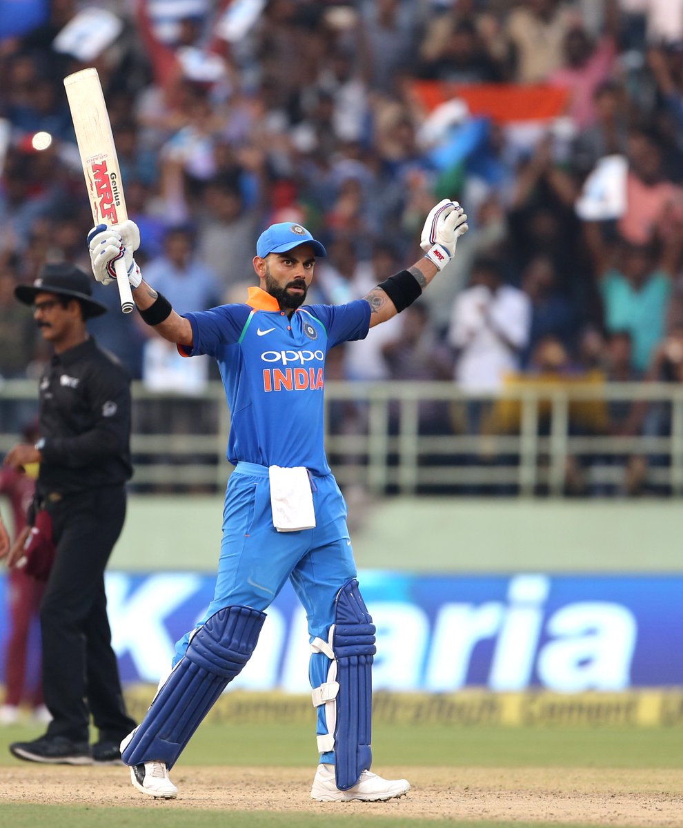 टीम इंडिया के कप्तान विराट कोहली ने एक बार फिर दिखा दिया कि आखिर क्यों उन्हें मॉडर्न डे किंग कहा जाता है. विराट कोहली ने लगातार दूसरे वनडे में वेस्टइंडीज के खिलाफ शतक जड़ दिया. विशाखापत्तनम में खेले जा रहे इस मैच में कोहली ने बेहतरीन बल्लेबाजी का मुजाहिरा पेश करते हुए कुल 157 रन बनाए. इस दौरान उनके बल्ले से 13 चौके और चार छक्के निकले.