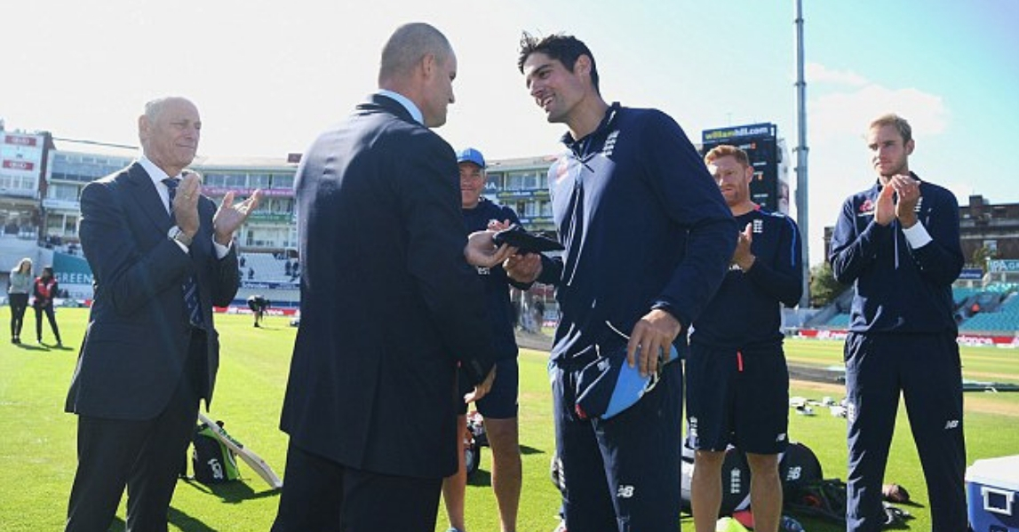 Andrew Strauss, England Cricket Board’s chairman and the former opening partner of Alastair Cook presented cook a special cap as the England opener is set to retire from international cricket. ECB chairman Colin Graves was also present at this occasion.