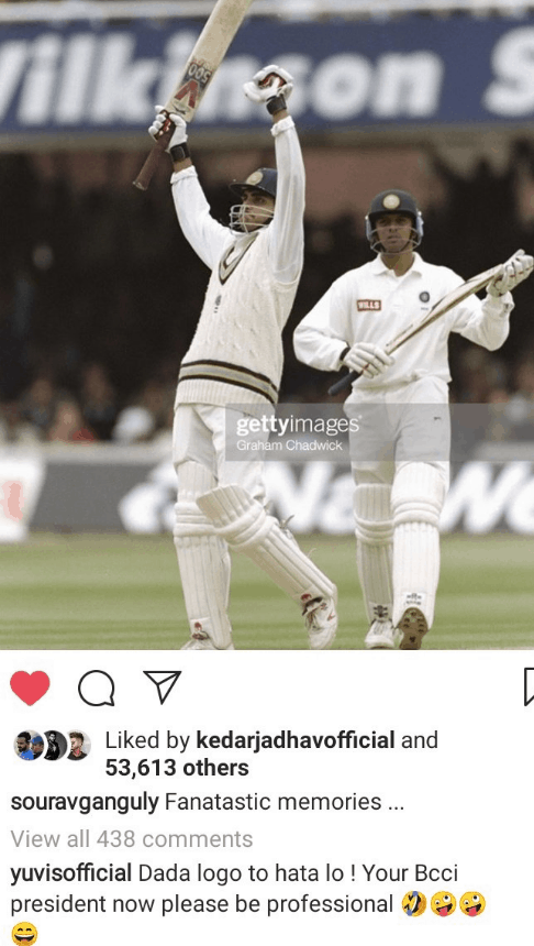 Yuvraj Singh was on his hilarious best once again while posting a comment on Sourav Ganguly’s latest Instagram post. The current BCCI president posted a throwback picture on his Instagram account and Yuvi was quick to troll his former captain.