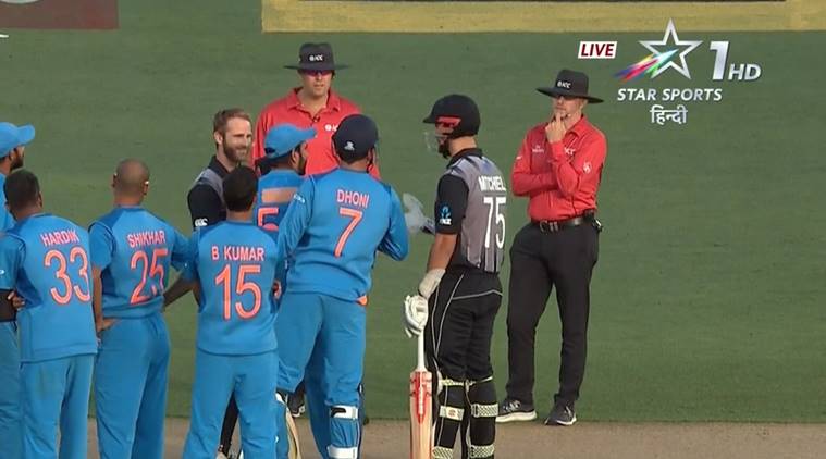 न्यूजीलैंड की पारी का छठा ओवर चल रहा था और अपने ओवर में पहले ही क्रुणाल पंड्या कॉलिन मुनरो को आउट कर चुके थे। उनके ओवर की आखिरी गेंद पर न्यूजीलैंड के बल्लेबाज डेरिल मिशेल बल्लेबाजी कर रहे थे। क्रुणाल ने उनके खिलाफ LBW की अपील की। अंपायर ने उन्हें आउट करार दिया।