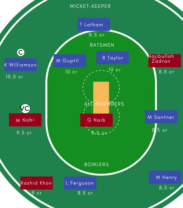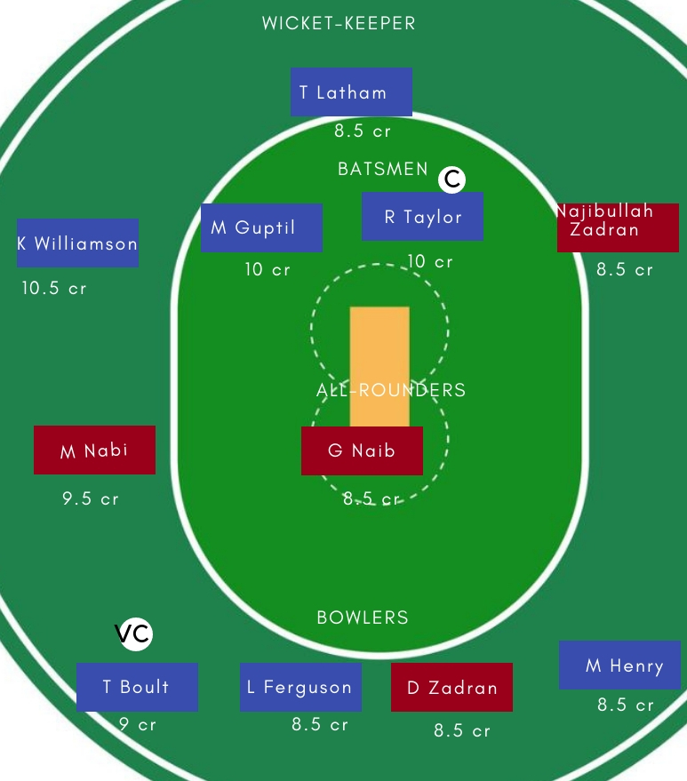 गेंदबाज – Trent Boult, Lockie Ferguson, Matt Henry, M Santner