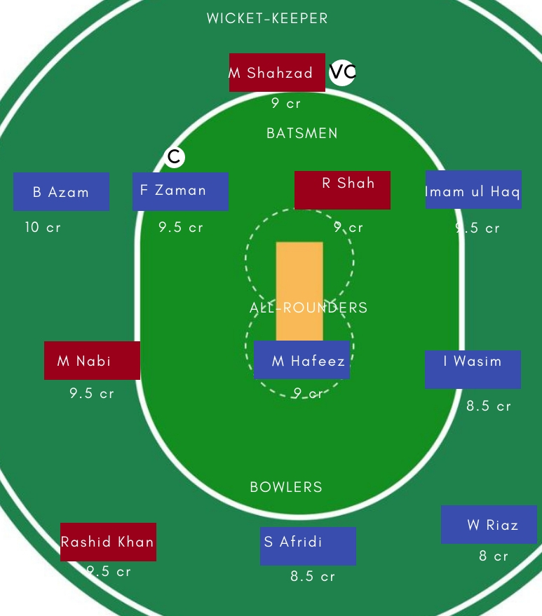 बल्लेबाज – Babar Azam, Fakhar Zaman,Imam ul Haq, Shoaib Malik
