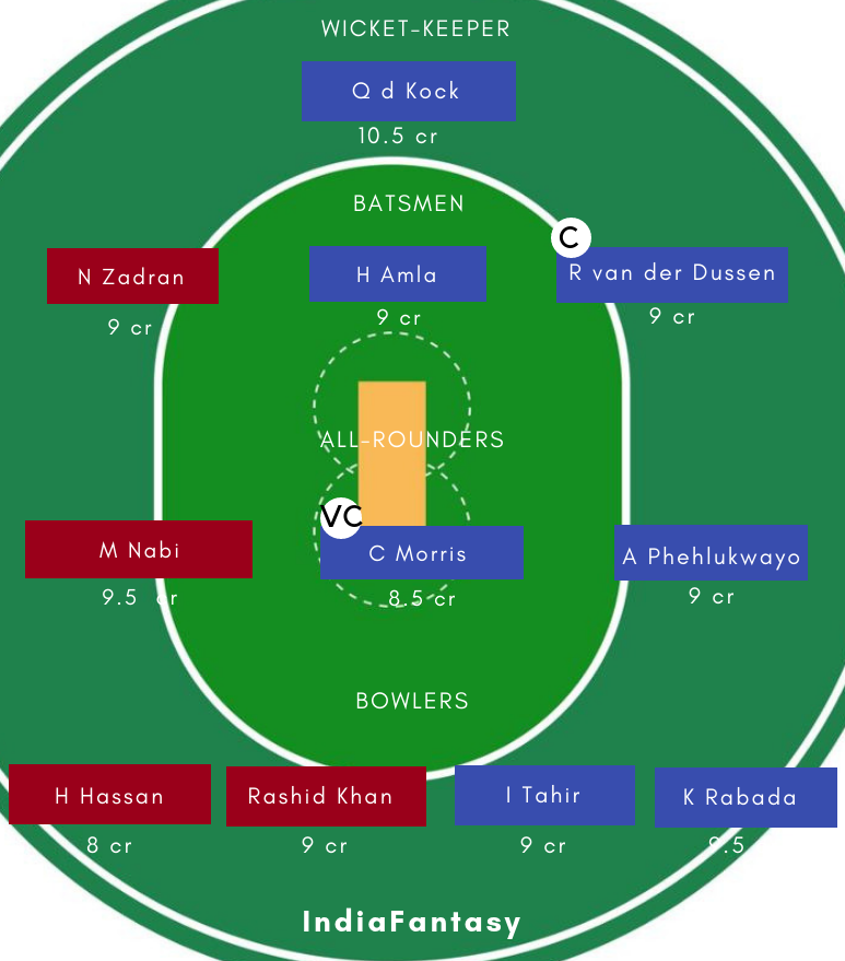 Suggested Captains: R van der Dussen, Q d Kock, C Morris, R Khan, M Nabi