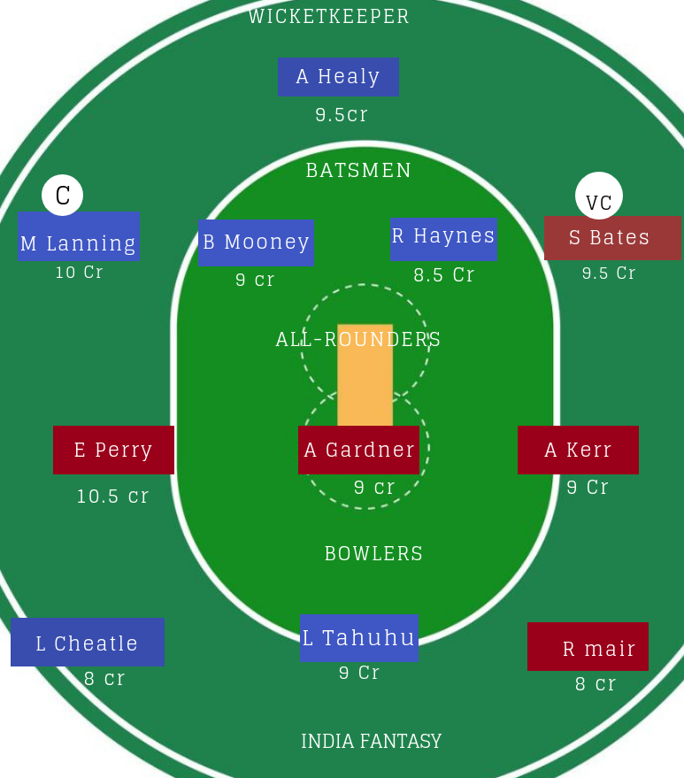 वहीं, न्यूजीलैंड की ओर से S Bates लगातार रन बना रही हैं. इन्हें आप उपकप्तान बना सकते हैं. R Haynes और B Mooney के रूप में दो और सर्वश्रेष्ठ बल्लेबाज आपकी टीम में होंगी, तो गेम जीतने के चांसेज बढ़ जाएंगे.