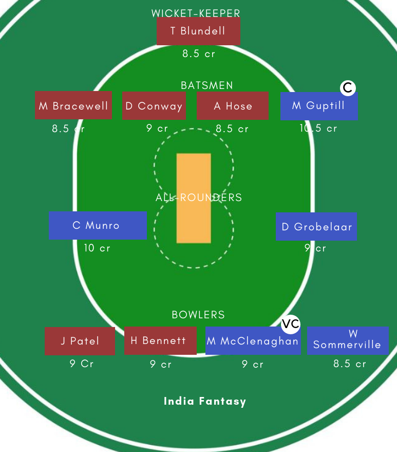 Batsmen: Devon Conway, Adam Hose, Michael Pollard, Michael Bracewell, Troy Johnson