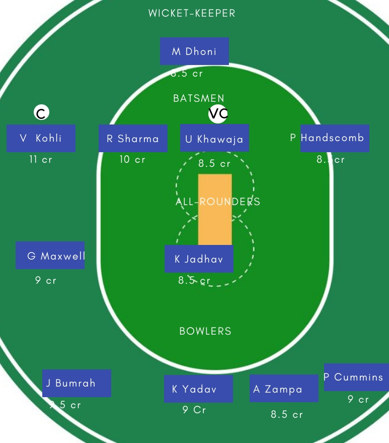 ऑलराउंडर : G Maxwell और K Jadhav दोनों अपनी-अपनी टीम के मैच विनर प्लेयर हैं. जाधव ने पिछले मुकाबले में 81 रनों की नाबाद पारी खेली थी.
