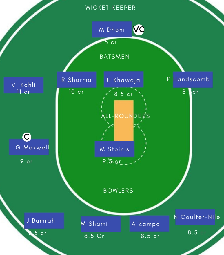 गेंदबाज : J Bumrah और MD Shami विकेट लेने वाले गेंदबाज हैं. वहीं, ऑस्ट्रेलिया की ओर से Nathan Coulter Nile और Adam Zampa को ले सकते हैं./