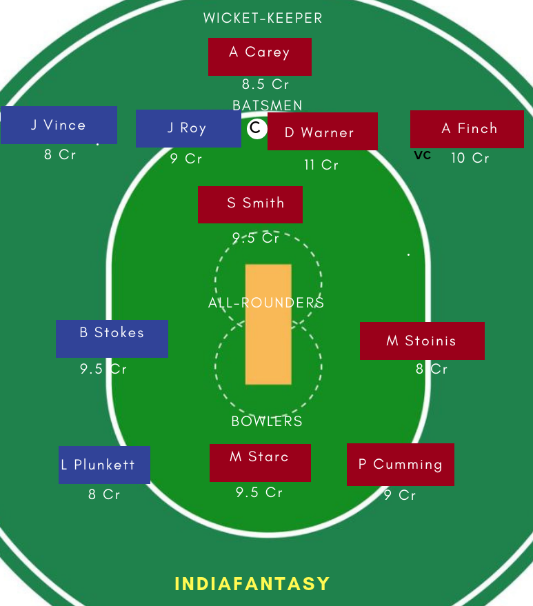 Batsmen: Dawid Warner, Aaron Finch, Steve Smith, P Handscomb