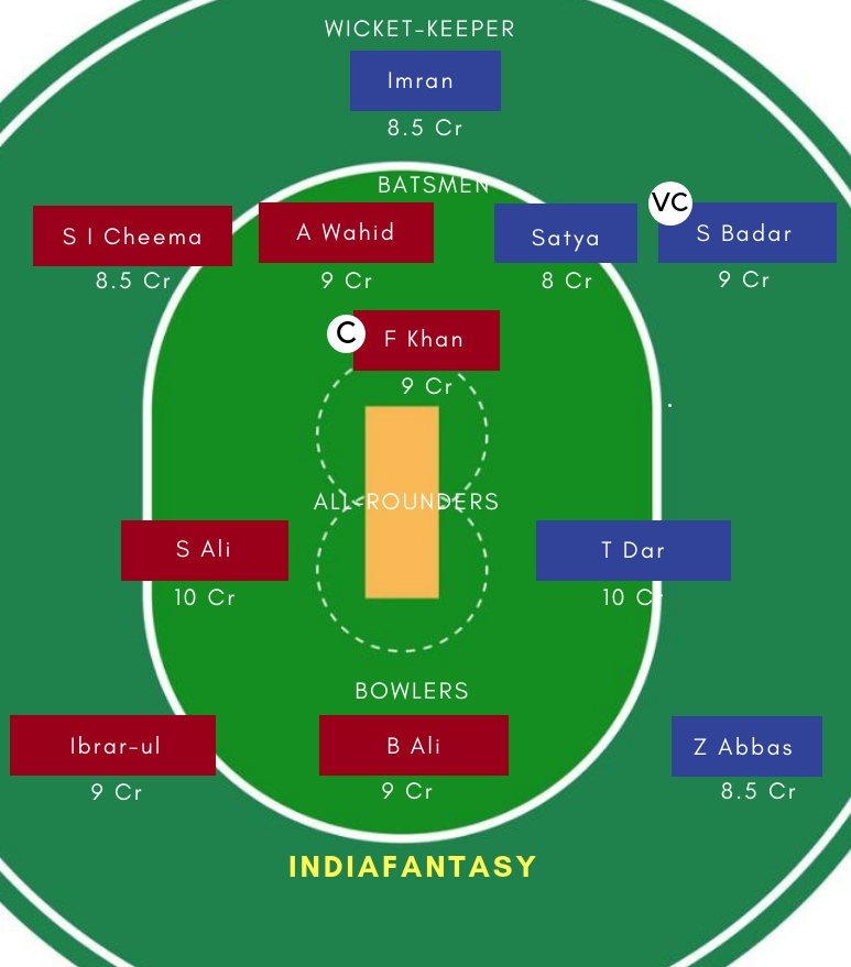 All-rounder – Shoaib Ali, Muhammad Nadeem (Doubt: Mohammad Ibrahim Khan)