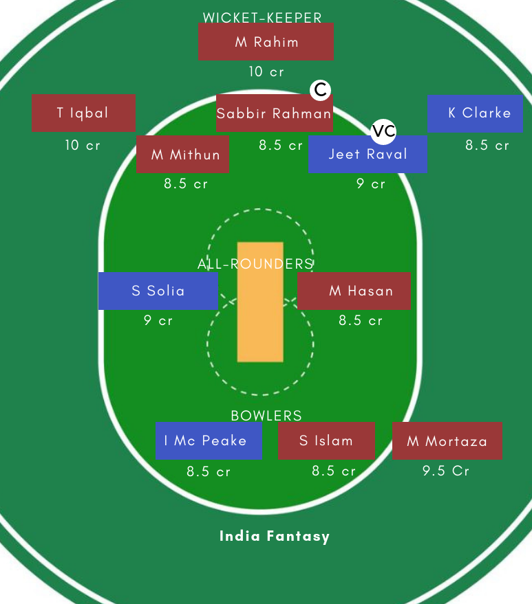 Batsmen: Tamim Iqbal, Sabbir Rahman, Mushfiqur Rahim, Soumya Sarkar/M Mithun