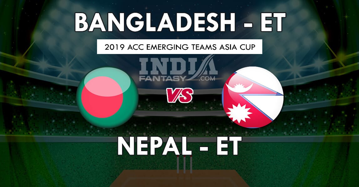 Competition name: Emerging Asia Cup Date & time: 18 November at 8:30 AM Venue: Bangladesh Krira Shikkha Protisthan No 4 Ground, Savar Last result at the venue: Nepal Emerging Team 217 all-out beat Hong Kong Emerging Team 177 all-out on 16 November 2019