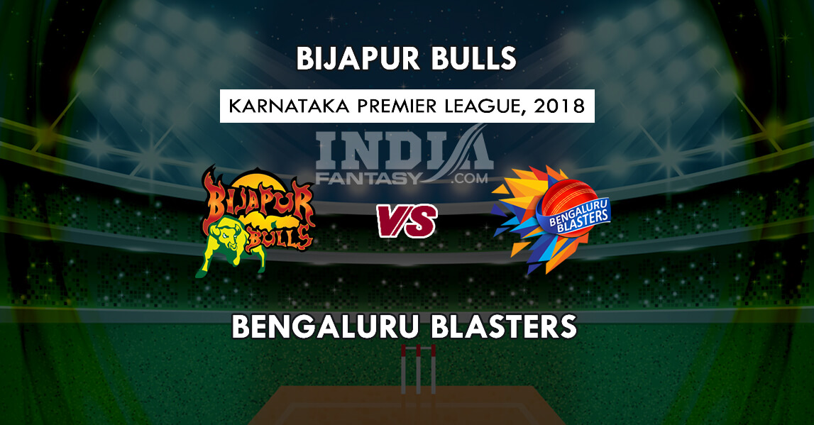 Table toppers Bengaluru Blasters are pitted against Bijapur Bulls in the second game of the KPL 2018 doubleheader on Wednesday at KSCA Hubli Cricket Ground.