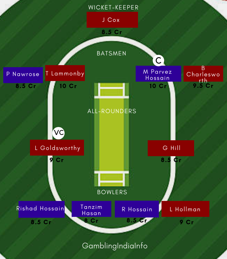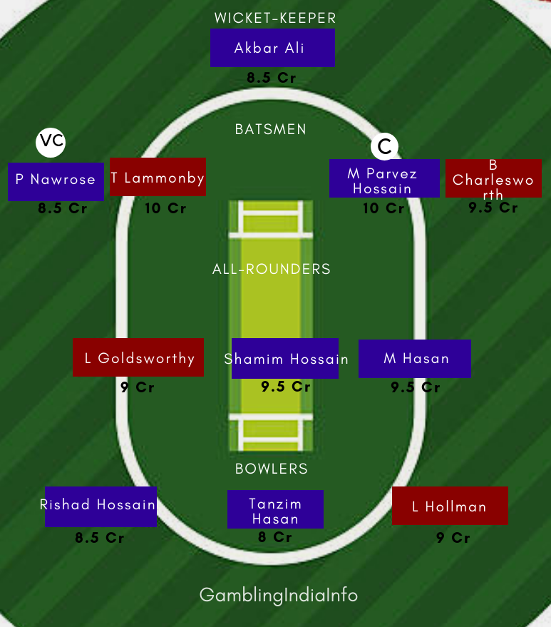 M Pervaiz Hossain who got 80 runs to his name in the last game will be a key batter alongwith Mohammad Prantik Nawroz and Mahmudul Hasan who got scores of 48 and 33 respectively.