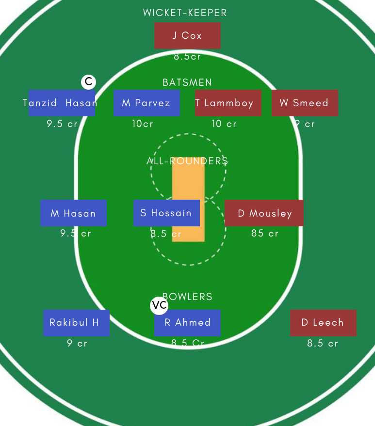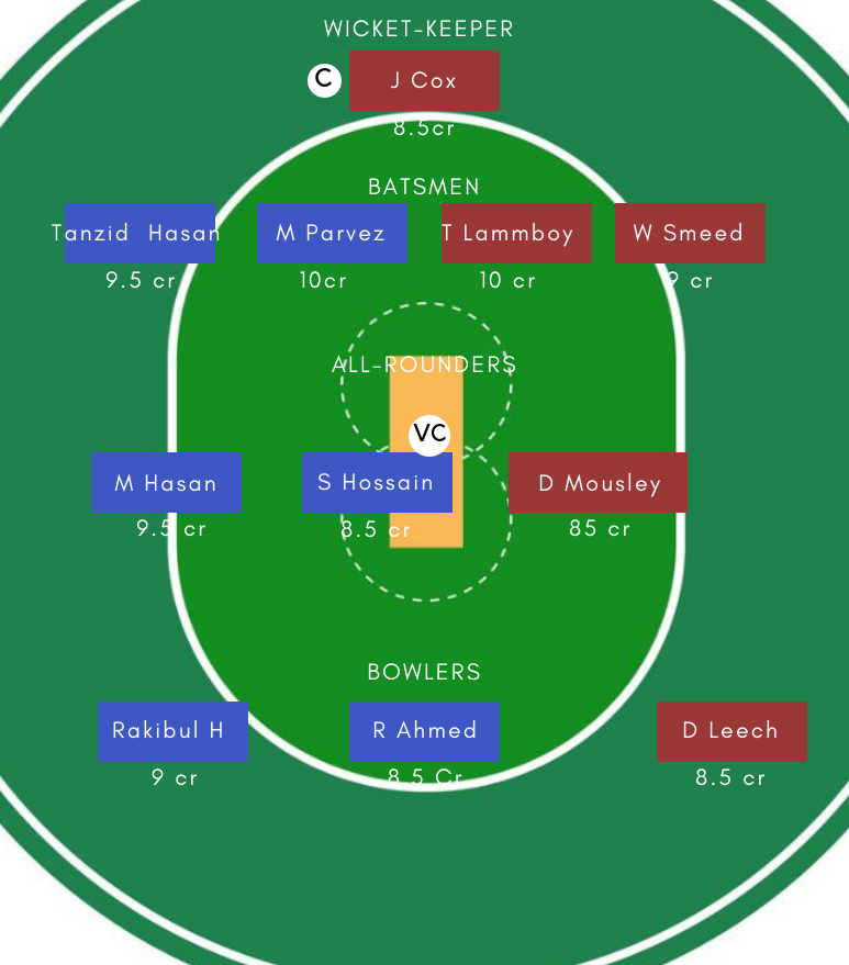 Batsmen – Shamim Hossain, M Parvez, Prantik Nawroz Nabil, Shahadat Hossain, Tanzid Hasan