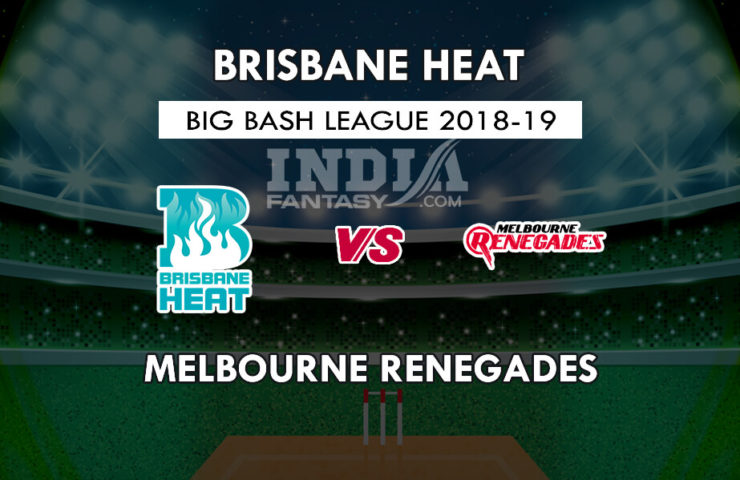 Chris Lynn’s Brisbane Heat and Tom Cooper led Melbourne Renegades will square off at the iconic Gabba, Brisbane on Thursday noon in the twenty-sixth fixture of BBL 2019. Both the sides are coming off after registering a win in their previous encounter and would be looking to carry the momentum forward.
