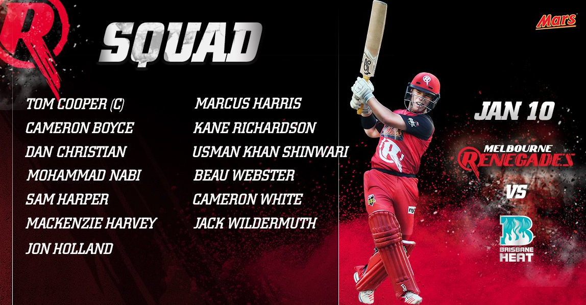 Both teams will reload at Geelong Cricket Ground, Geelong on Sunday for their head to head encounter. A 13-member squad has been released from both the squads with one change apiece on either side. Test batsman Marnus Labuschagne has been replaced by Alexx Ross in Heat while Marcus Harris’ inclusion is the only change for the Renegades.