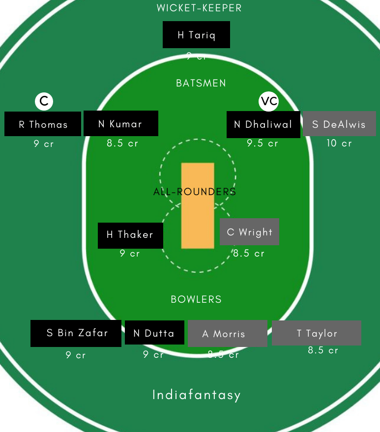Hamza Tariq, N Dhaliwal, Rodrigo Thomas, Rizwan Cheema, N Kumar, H Thaker, Abraash Khan, Saad Bin Zafar, Nikhil Dutta, J Siddiqui, C Pervez/D Heyliger.