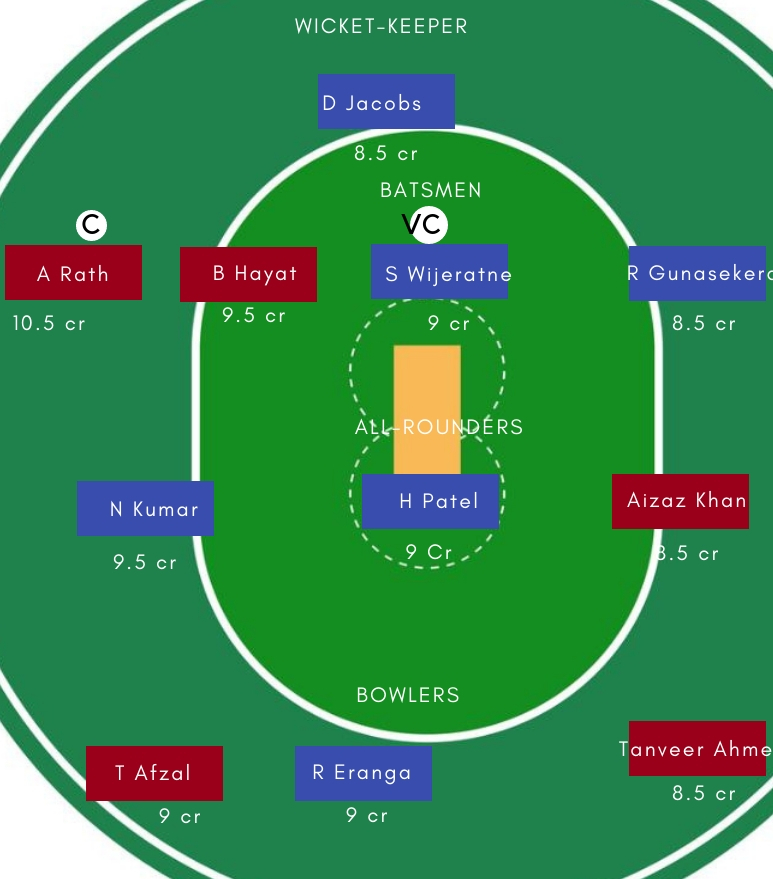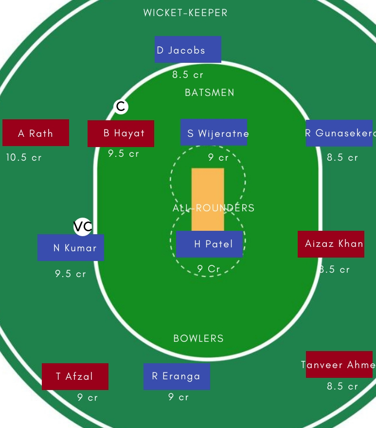 वही, N Kumar, H Patel के रुप में टीम के पास दो हरफनमौला ऑलराउंडर भी मौजूद है। जो बल्ले और गेंद दोनों से अहम योगदान दे सकते है। जबकि गेंदबाजी में Romesh Eranga, Nikhil Dutta गेंद से काफी कारगर साबित हो सकते है।