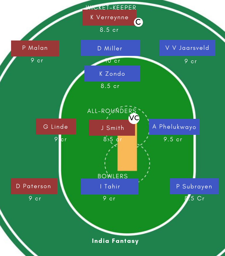 Dolphins fantasy picks: Vaughn van Jaarsveld, Dane Vilas and David Miller have all scored 100+ runs in the competition. Imran Tahir has been phenomenal with the ball. Andile Phehlukwayo and Prenelan Subrayen are among other contributors for the side.