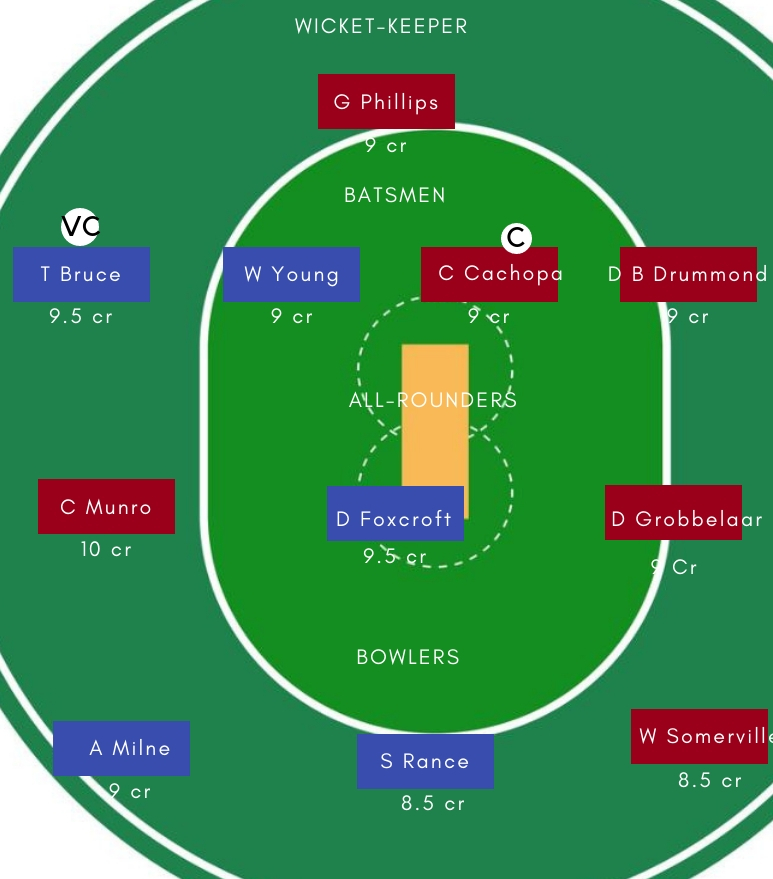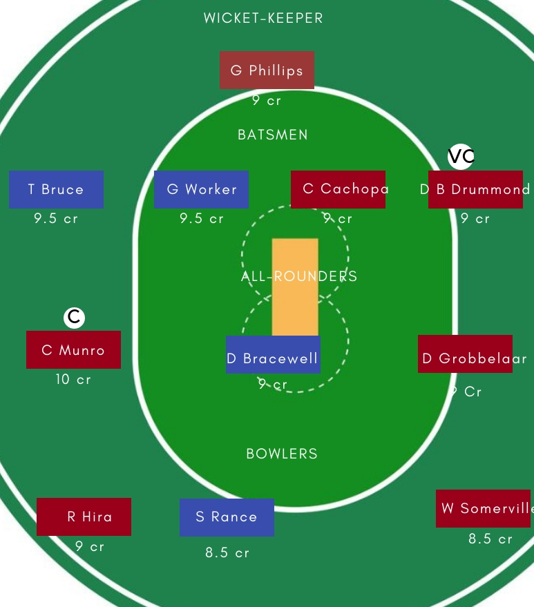 गेंदबाज – गेंदबाजी में Mitchell McClenghan, Roneel Hira,Seth Rance, Adam Milne सबसे अच्छे विकल्प होगें। Roneel Hira ने पिछले मैच में तीन विकेट अपने नाम किए थें। वही, Mitchell McClenghan ने इस सीजन गेंद से शानदार प्रदर्शन किया है।