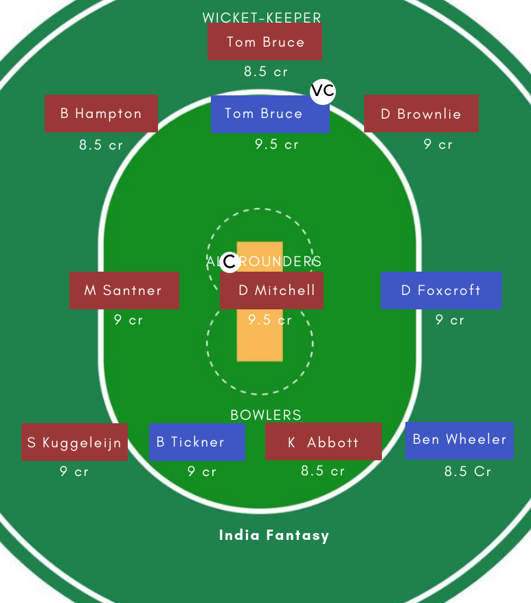 Nick Kelly, Neil Wagner, Corey Anderson, Dean Brownlie (c), Kyle Abbott, Brett Hampton, Tim Seifert (wk), Scott Kuggeleijn, Daryl Mitchell/Daniel Flynn, M Santner/ Ish Sodhi, Tim Southee