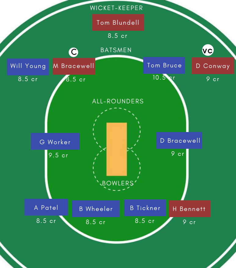 Jeetan Patel, Hamish Bennett, Devon Conway, Luke Woodcock, Troy Johnson, Ben Sears, Ollie Newton, Michael Bracewell, Tom Blundell, Malcolm Nofal, Rachin Ravindra.
