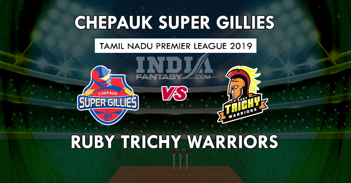 After a heartbreaking super over loss against Karaikudi Kaalai in the opening fixture, Ruby Trichy Warriors will look to open their account against Chepauk Super Gillies when the two teams will face off at Indian Cement Company Ground, Tirunelveli tomorrow.