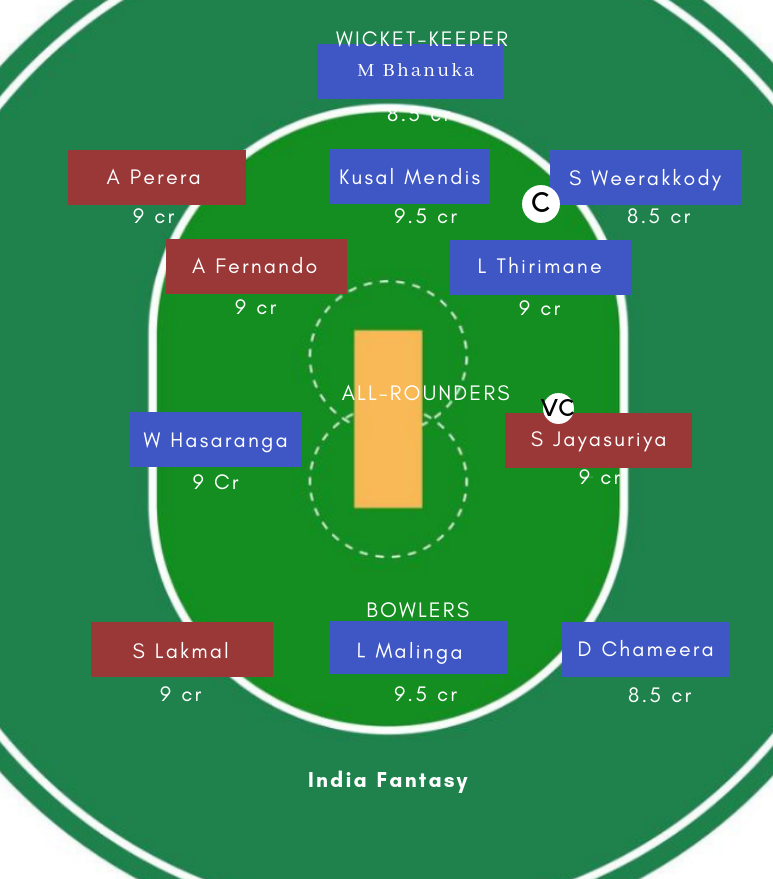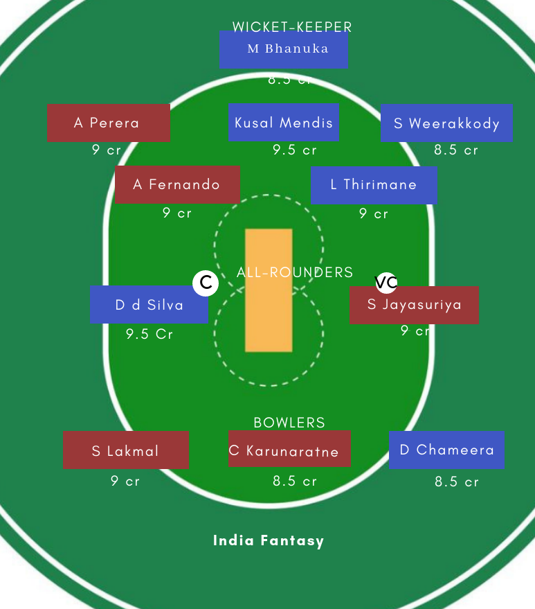 In wicketkeeper, M Bhanuka will be the right pick as D Chandimal has looked off-colour so far.