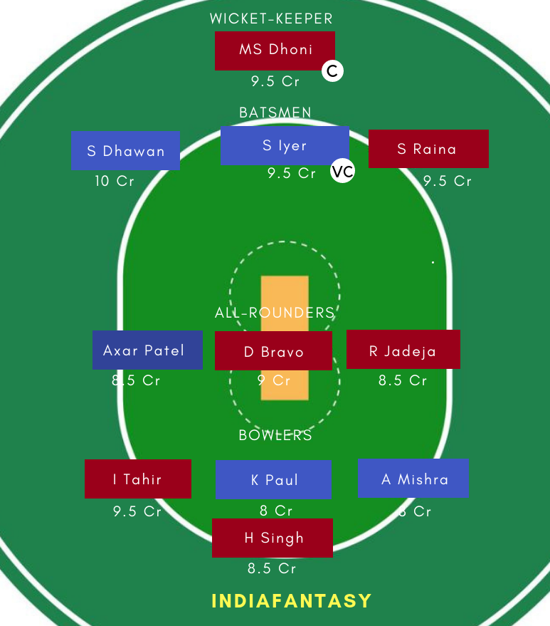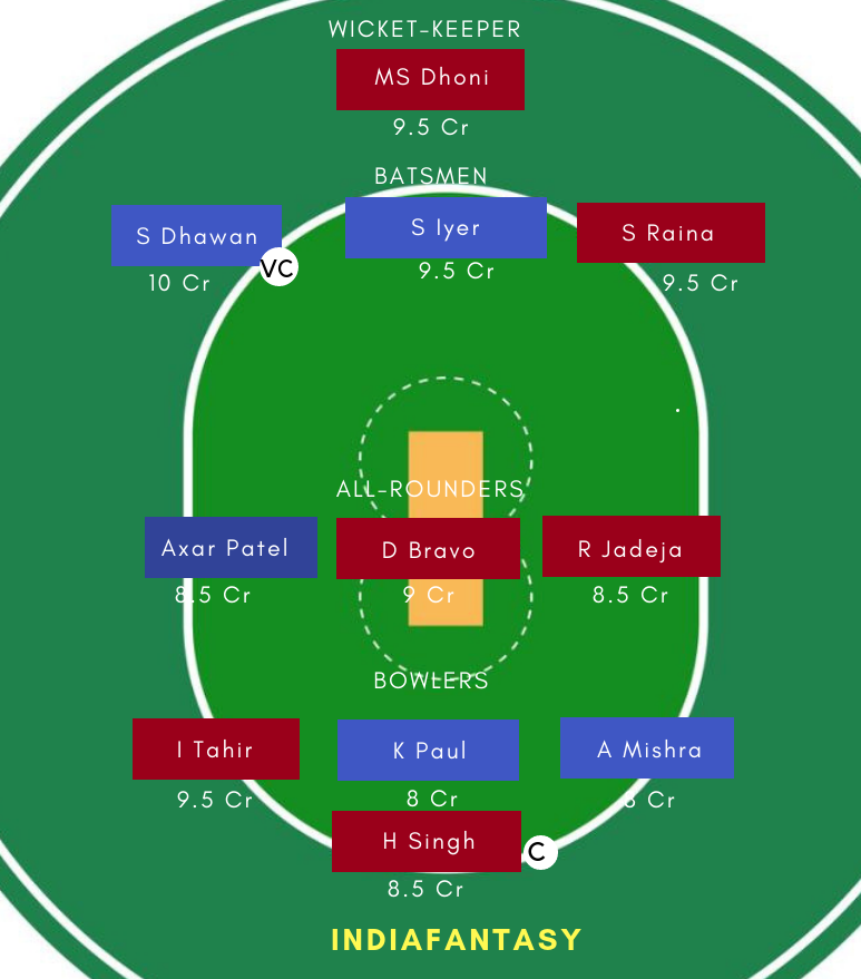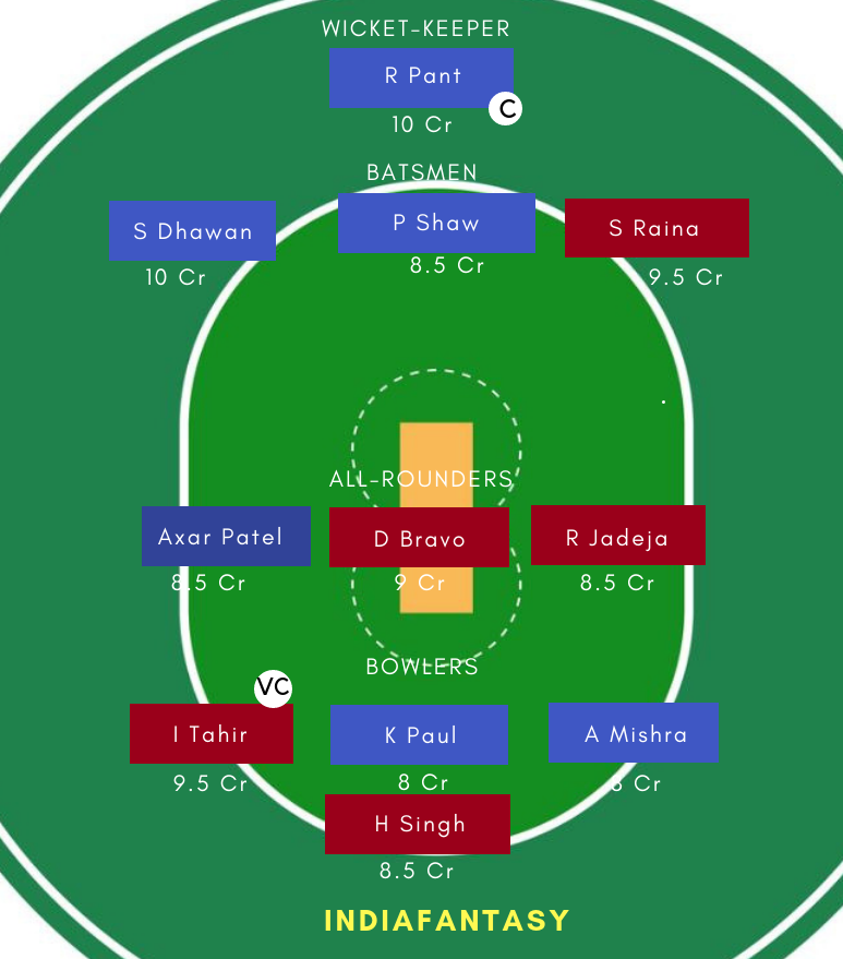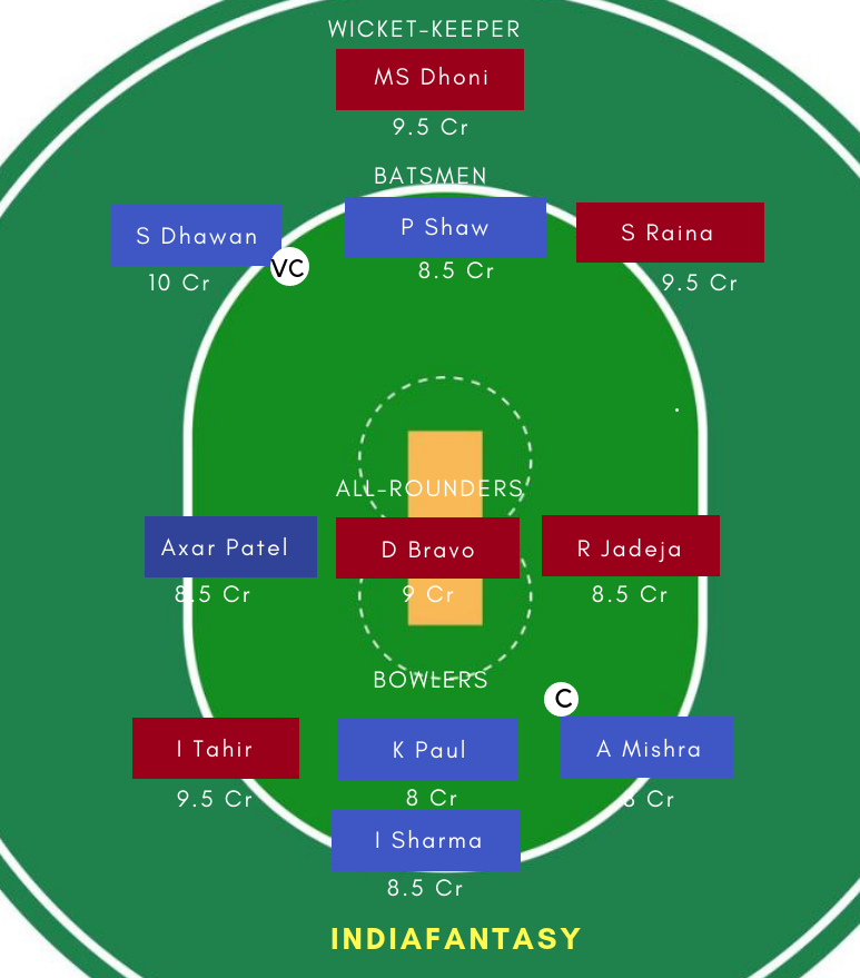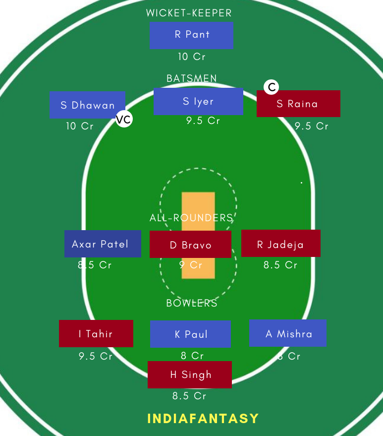 Prithvi Shaw, Axar Patel, Keemo Paul, Shikhar Dhawan, Shreyas Iyer(c), Rishabh Pant(w), Sherfane Rutherford, Amit Mishra, Ishant Sharma,