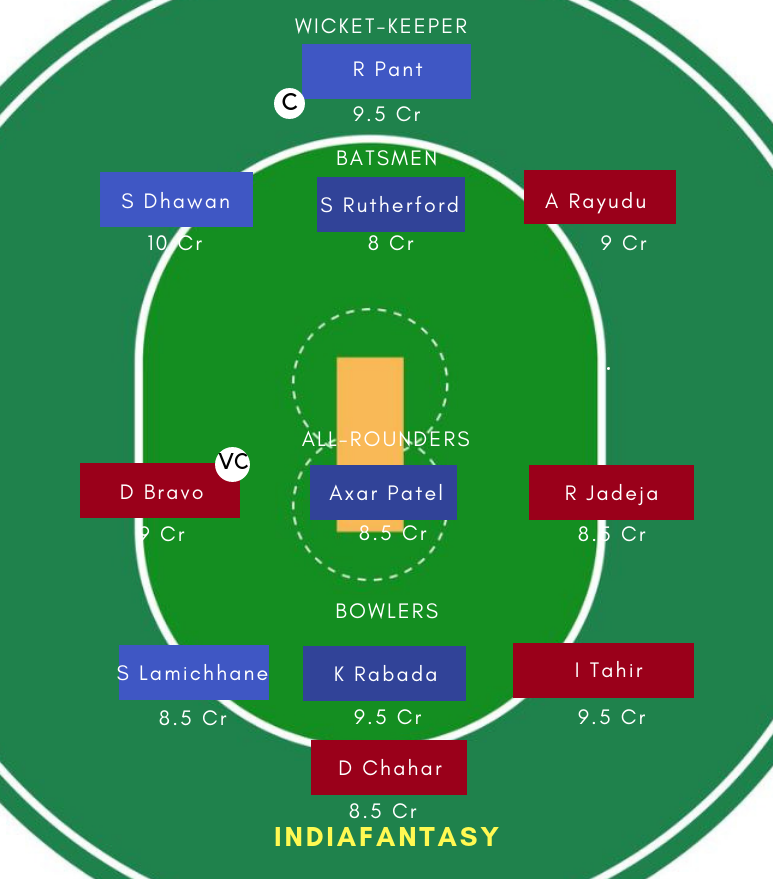 Batsmen –P Shaw, Shikhar Dhawan, Shreyas Iyer (c), C Ingram, Sherfane Rutherford