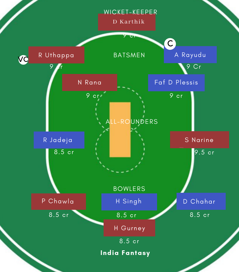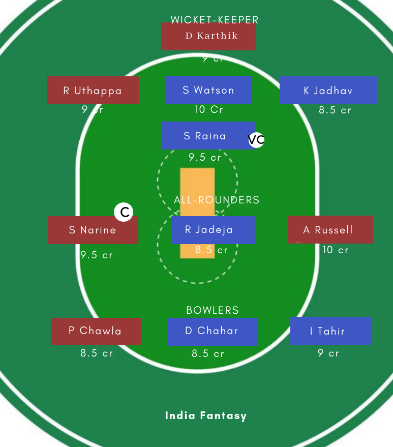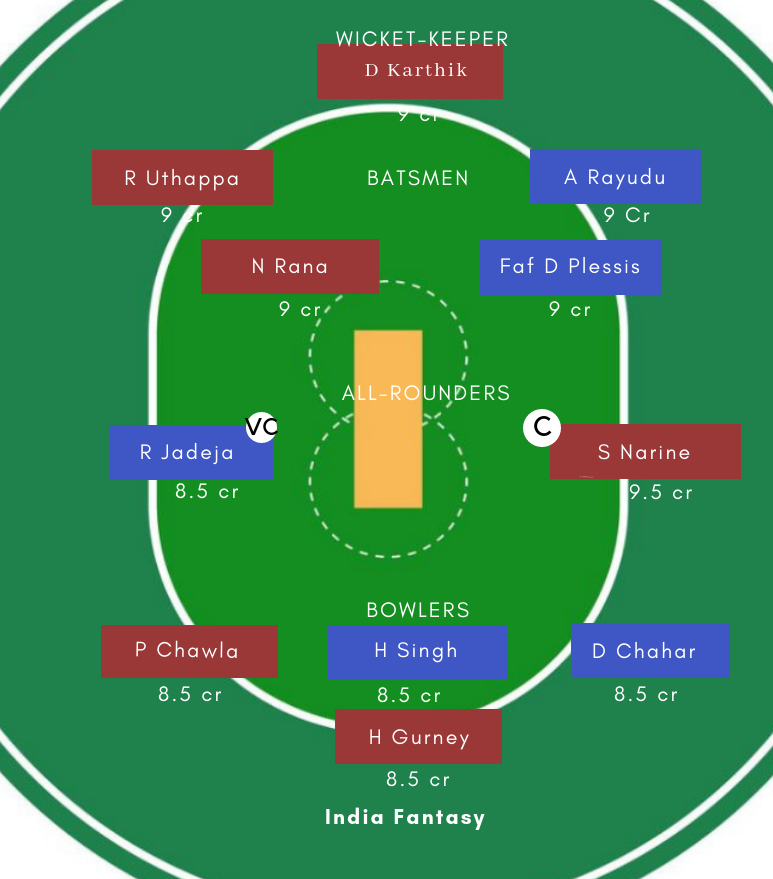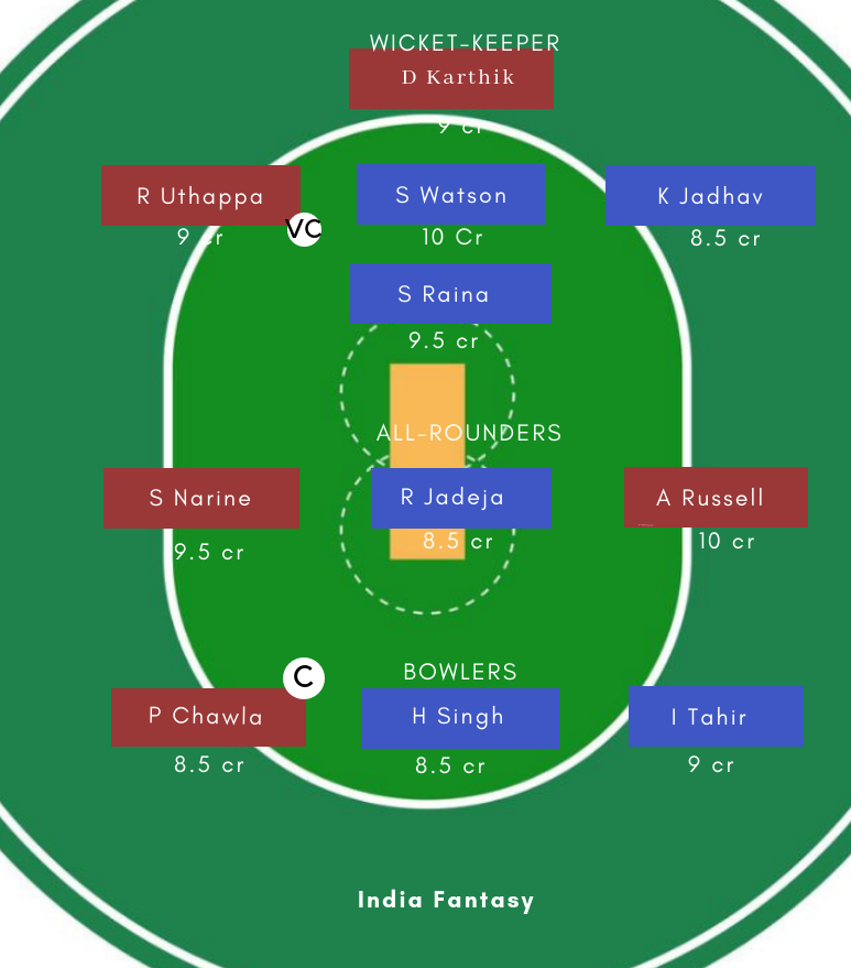 Captain & Vice Captain- Imran Tahir, P Chawla, H Singh, S Narine and K Yadav