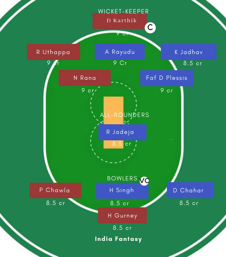 Both the teams boast plenty of spin options and with the wicket too suitable for spinners, it can be spinners’ day out. P Chawla, Imran Tahir, H Singh and Kuldeep Yadav are the potential match-winners and can change the course of the game alone.