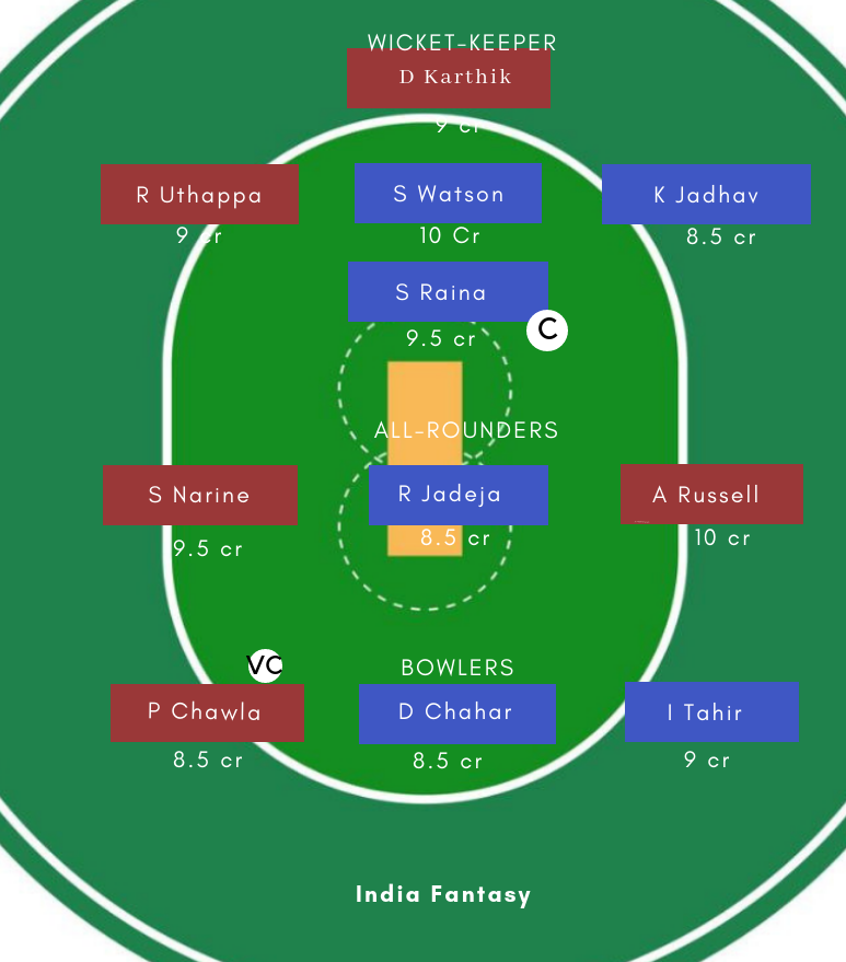 In batting, Suresh Raina, and Shane Watson will be the perfect pick in batters from CSK. Since IPL 2015, Suresh Raina has scored two fifties against KKR while Shane Watson has scored a ton and has three 30+ scores. R Uthappa, N Rana and S Gill will be the right picks from KKR. Rana has looked in good touch with the bat so far while S Gill smashed an unbeaten fifty and guided his side to win in Eden Gardens last year.