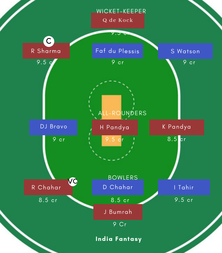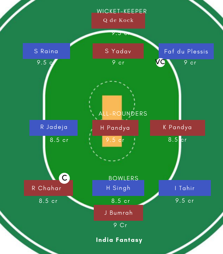Spinners love to bowl at M Chidambaram Stadium in Chennai. We saw an absolute turner in the opening clash against RCB and since then spinners have an upper hand in taking wickets at this venue. Imran Tahir, Harbhajan Singh, R Jadeja have bowled brilliantly at this surface. Mumbai too has a couple of quality spinners in the name of K Pandya, M Markande and R Chahar. So, it can be spinners day out at M Chidambaram.