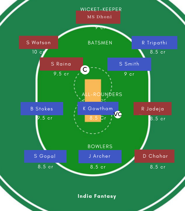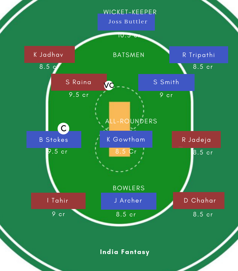 Ben Stokes is a must have all-rounder from RR. In his last three innings against CSK, Stokes has scored 46, 11, and 45 runs