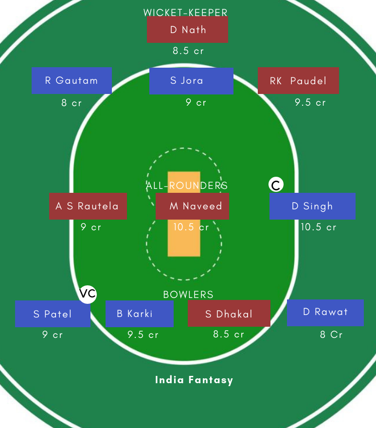 गेंदबाज: B Karki, Sunny Patel, R Giri, D Rawat
